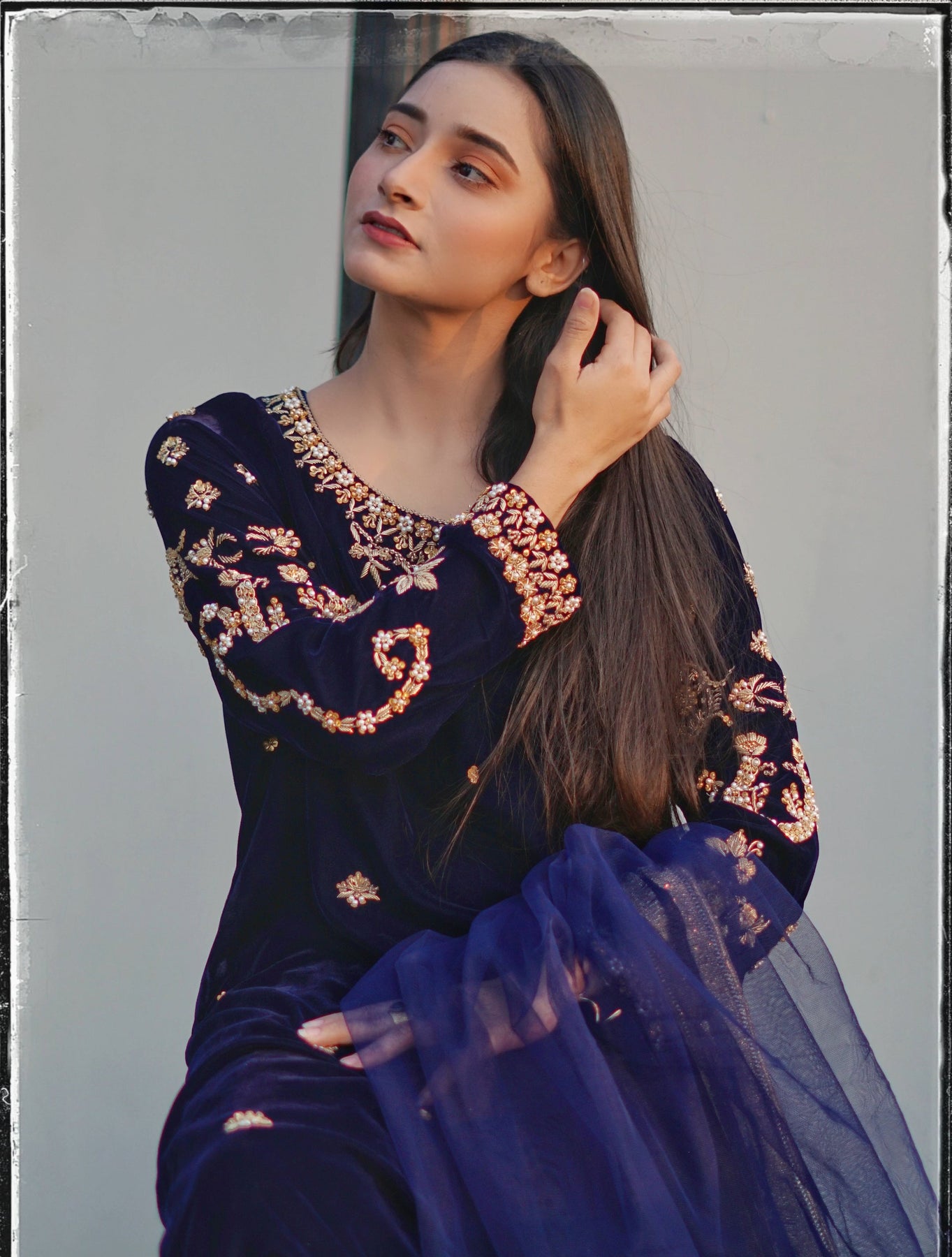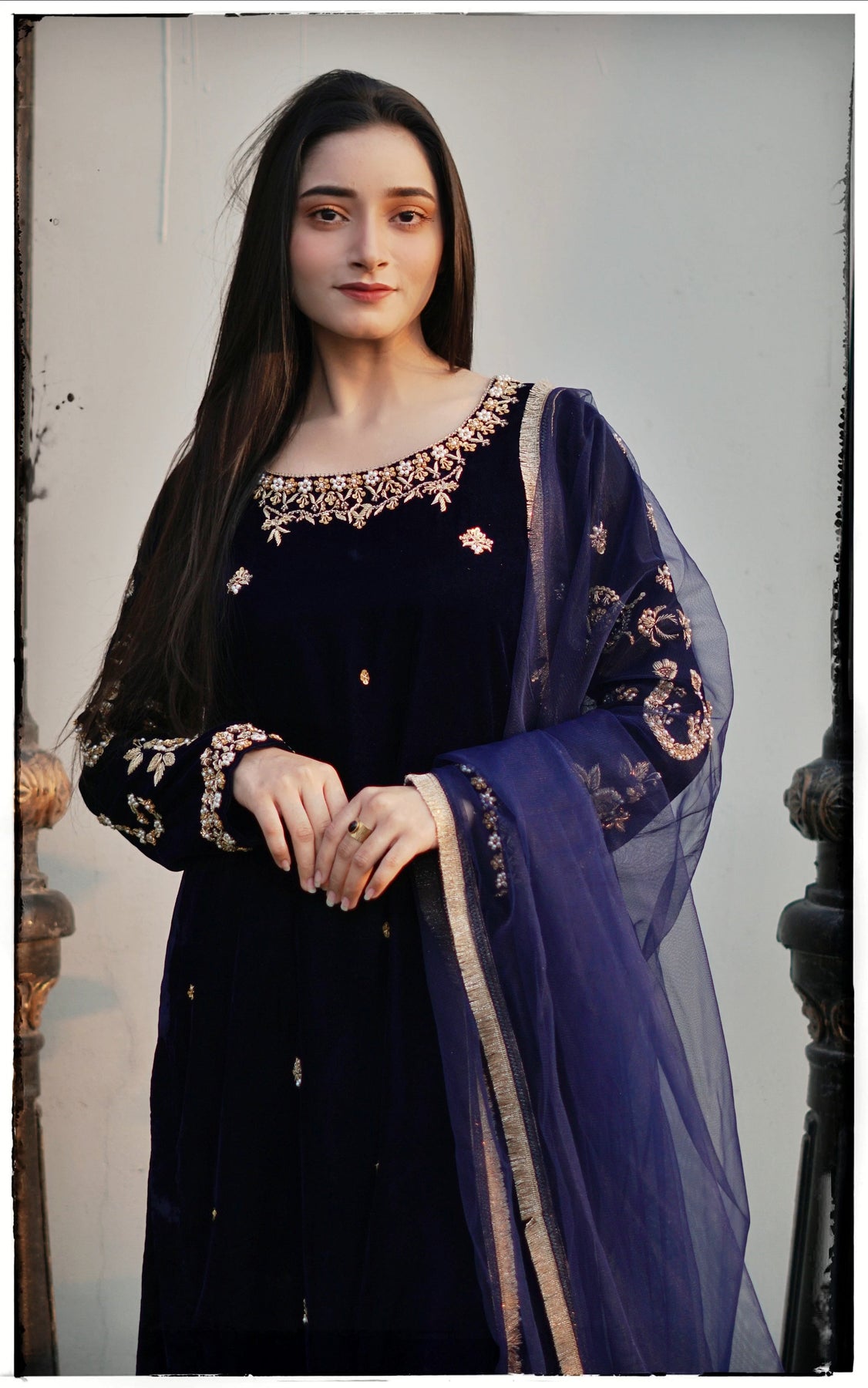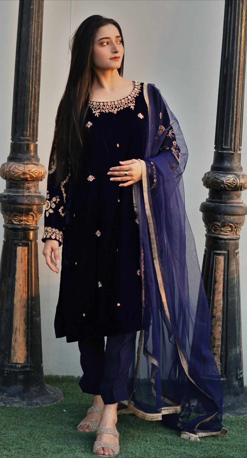 Rich Navy Blue Velvet 3-Piece Suit – Perfect for Brides & Winter Weddings