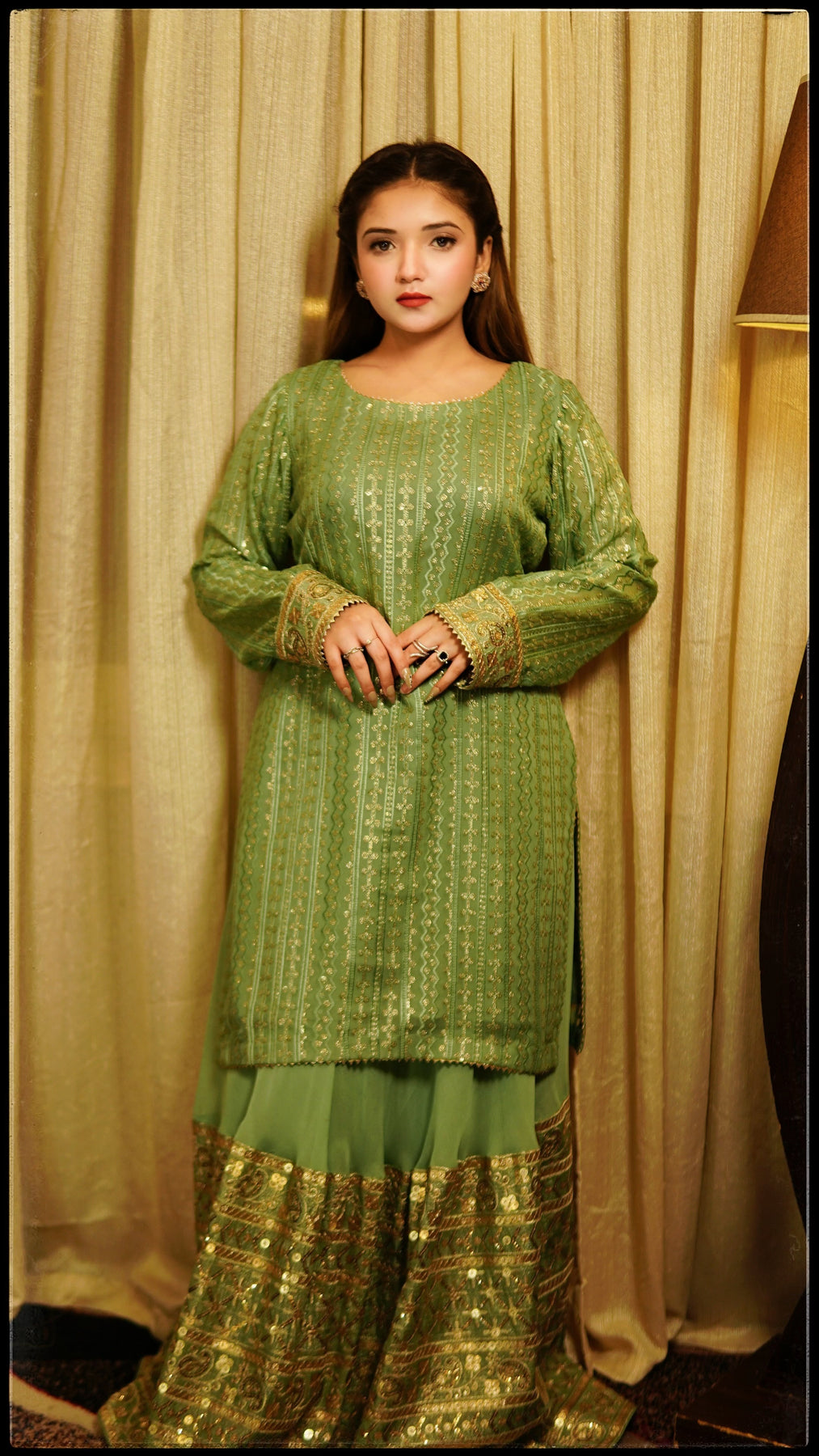 Green chiffon sharara